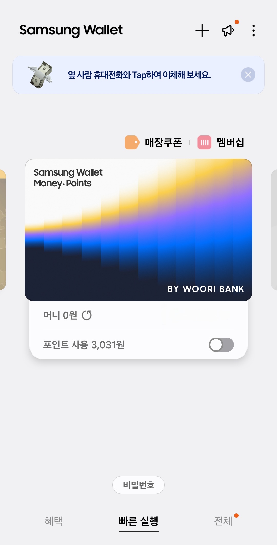 사용법은 일단 Samsung wallet => 혜택 페이지가 추가되었는데 이것저것 동의해주면 된다.